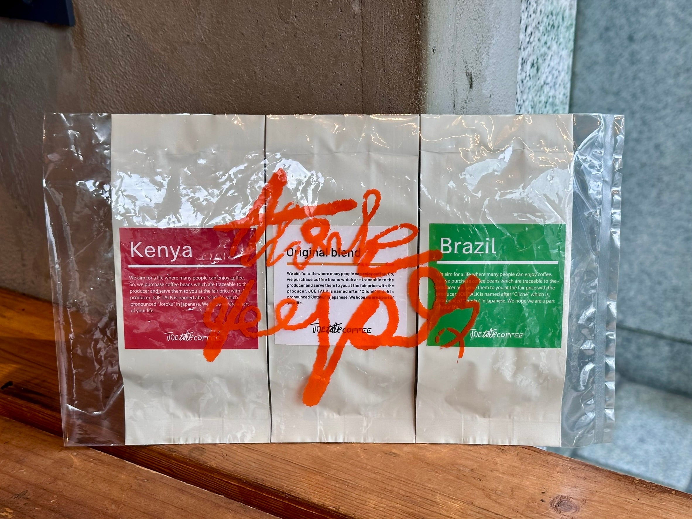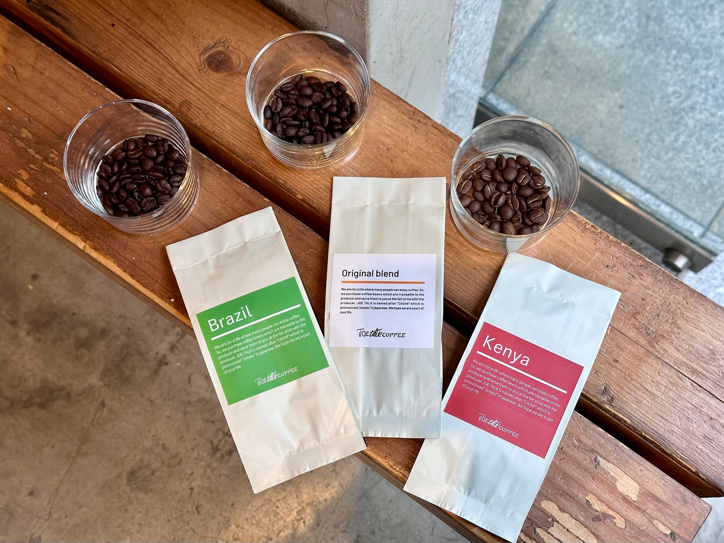 JOE TALK COFFEEのオススメ豆が3種類入った飲み比べセットです。